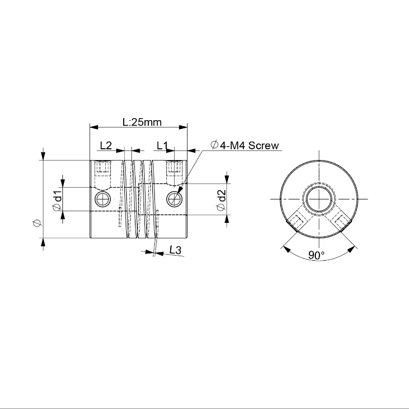Este acople es de aluminio maquinado, posee un ranurado helicoidal y tornillos prisioneros allen para su ajuste con los ejes. Son muy utilizados en sistemas CNC, impresoras 3D, fajas transportadoras.
