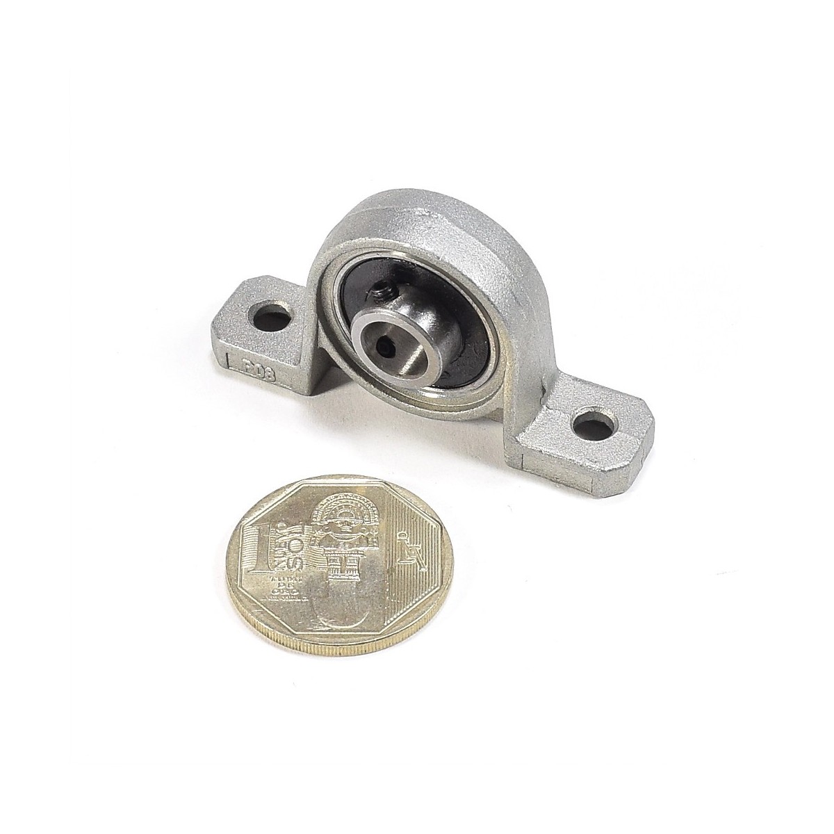 La chumacera KP08 es de auto-alineación, permite ajustar o reemplazar el eje/tornillo de potencia fácilmente. Posee con 2 agujeros para su montaje a una superficie plana con tornillos M4, no se incluyen los tornillos M4 pues la longitud del tornillo de montaje dependerá del espesor de la superficie donde se instale la chumacera.